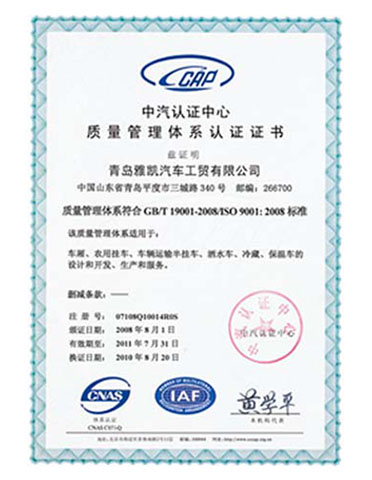 Qingdao Yakai Automotive Industry and Trade Co., LTD (here in and after referred to as Yakai Auto), established in 1989, is an advanced company which is committing itself in researching and developing, include refrigerated truck, insulated truck, wing open truck, trailer and other special truck.