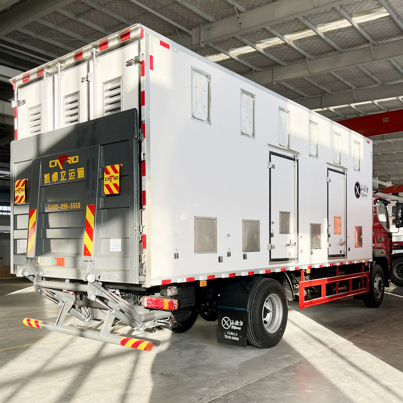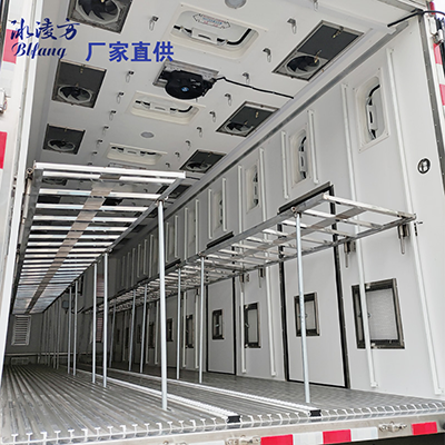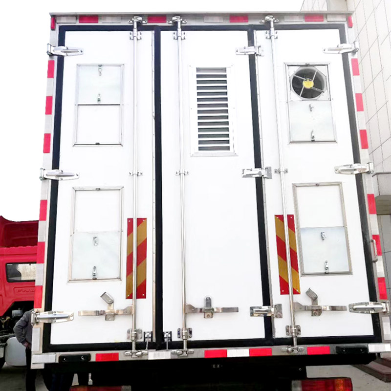 Introduction to the box structure of the chicken seedling transport vehicle: the box body is an internal and external FRP structure, and the middle is 8cm thick polyurethane insulation material, which has excellent insulation performance. The number of louvers can be reasonably installed on the left and right sides of the vehicle according to the size of the vehicle model. Louvers can also be installed on the front and back of the box body as required (optional), and high-power exhaust fans are installed on the top of the vehicle, It can effectively alleviate the indoor air quality and ensure the survival rate of chicken, duck and goose seedlings in long-distance transportation.